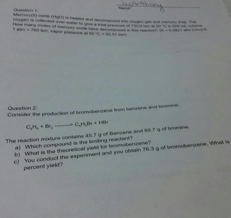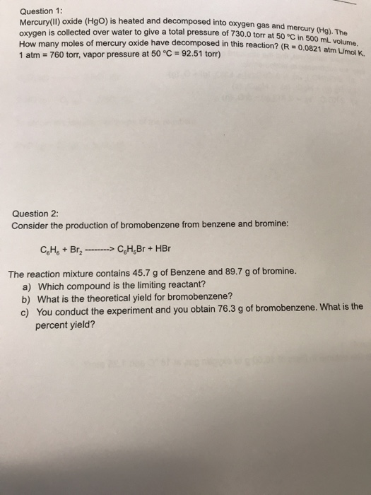 Solved Question 1 Mercury Li Oxide Hgo Is Heated And D Chegg Com