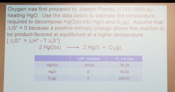 Solved Oxygen Was First Prepared By Heating Mercury Ii O Chegg Com