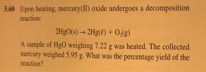 Solved 5 60 Upon Heating Mercury Ii Oxide Undergoes A Chegg Com