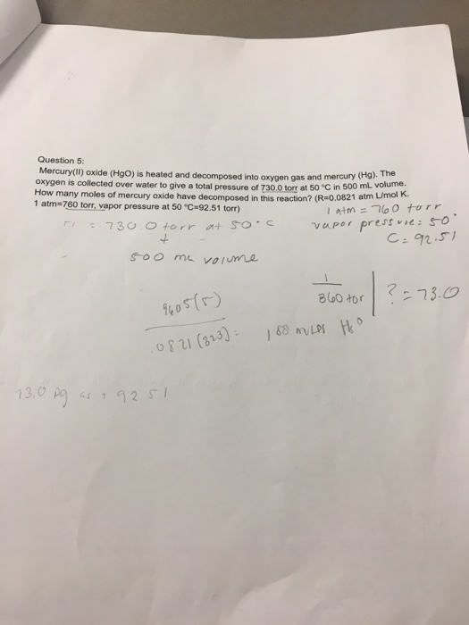 Solved Question 5 Mercury Ll Oxide Hgo Is Heated And Chegg Com