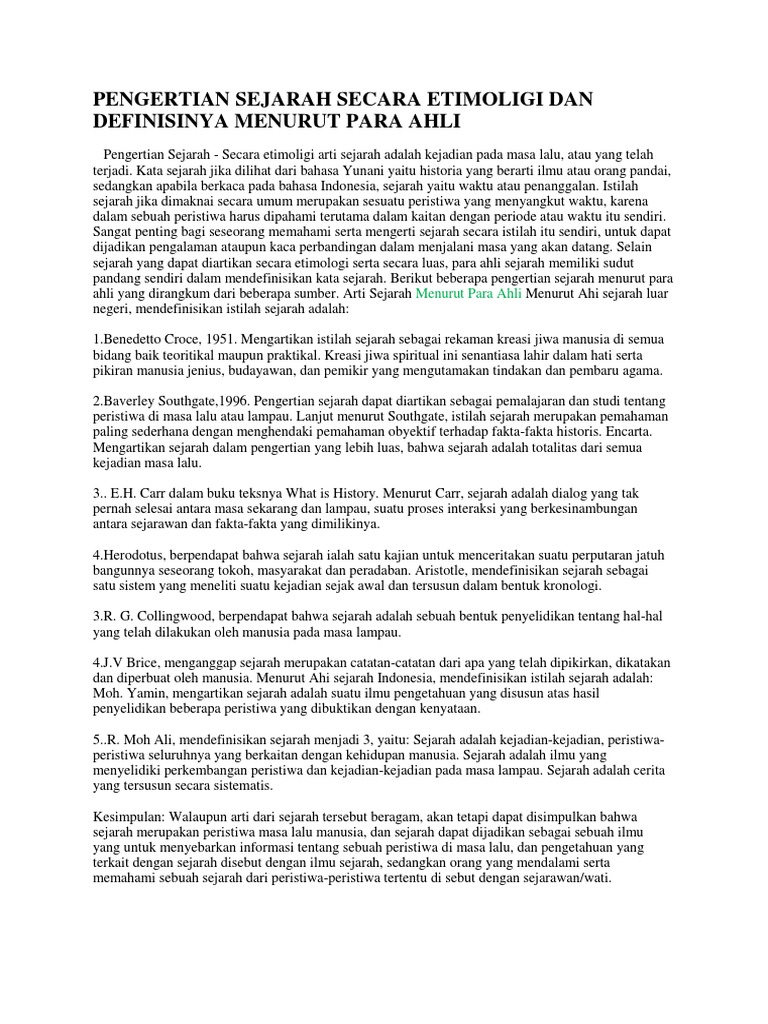 Pengertian Sejarah Secara Etimoligi Dan Definisinya Menurut Para Ahli