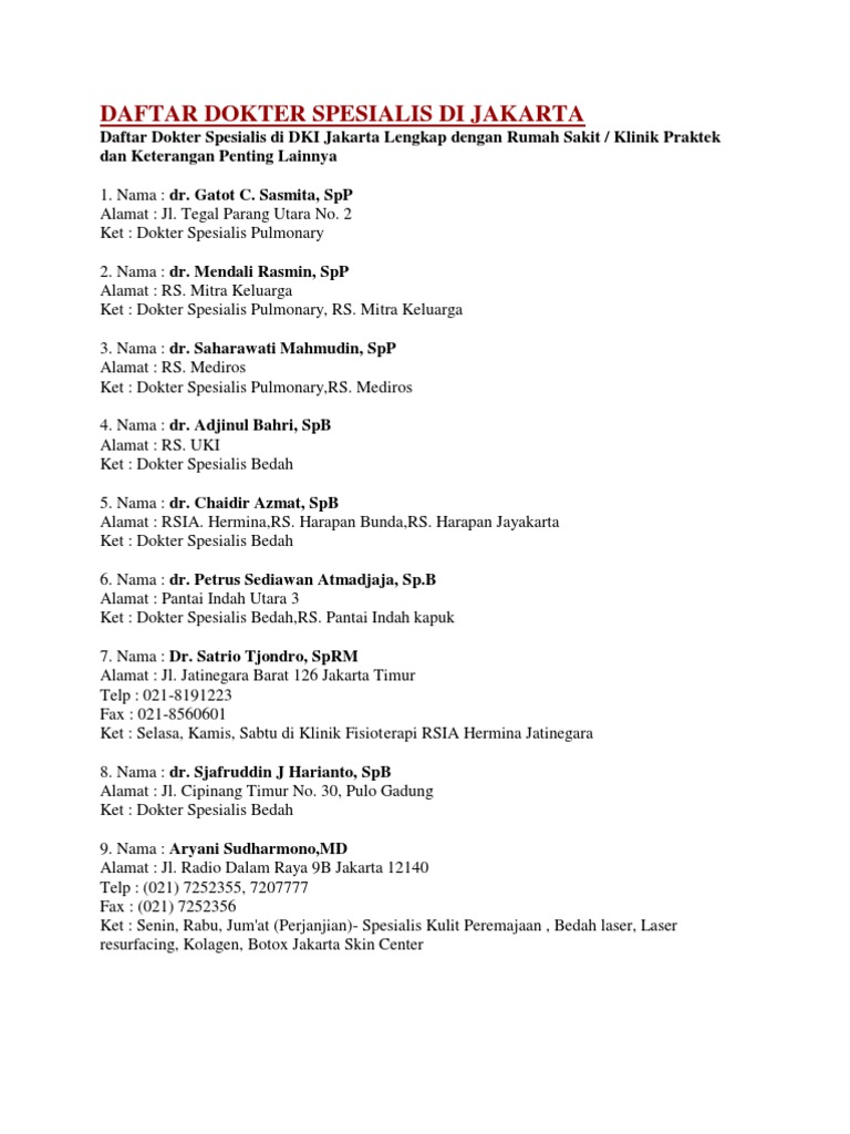 Jadwal Praktek Dokter Spesialis Di Rs Mekar Sari Bekasi